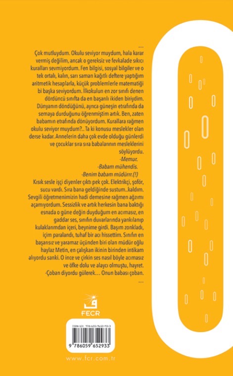 Çok mutluydum. Okulu seviyor muydum, hala karar vermiş değilim, ancak o gereksiz ve fevkalade sıkıcı kuralları sevmiyordum. Fen bilgisi, sosyal bilgiler ve o tek ortalı, kalın, sarı saman kağıtlı deftere yaptığım aritmetik hesaplarla, küçük problemlerle matematiği bi başka seviyordum. İlkokulun en zor sınıfı denen dördüncü sınıfta da en başarılı ikiden biriydim. Dünyanın döndüğünü, ayrıca güneşin etrafında da semaya durduğunu öğrenmiştim artık. Ben, zaten babamın etrafında dönüyordum. Kurallara rağmen okulu seviyor muydum?.. Ta ki konusu meslekler olan derse kadar. Annelerin daha çok evde olduğu günlerdi ve çocuklar sıra sıra babalarının mesleklerini söylüyordu.
