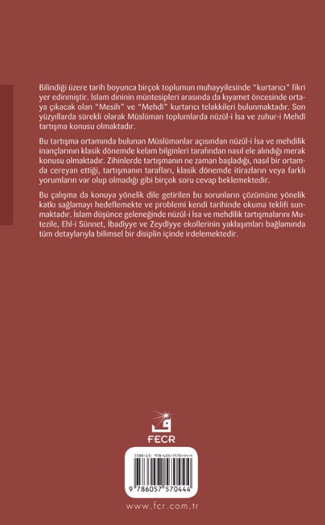 Bu çalışma da konuya yönelik dile getirilen bu sorunların çözümüne yönelik katkı sağlamayı hedeflemekte ve problemi kendi tarihinde okuma teklifi sunmaktadır. İslam düşünce geleneğinde nüzûl-i İsa ve mehdîlik tartışmalarını Mutezile, Ehl-i Sünnet, İbadîyye ve Zeydîyye ekollerinin yaklaşımları bağlamında tüm detaylarıyla bilimsel bir disiplin içinde irdelemektedir.