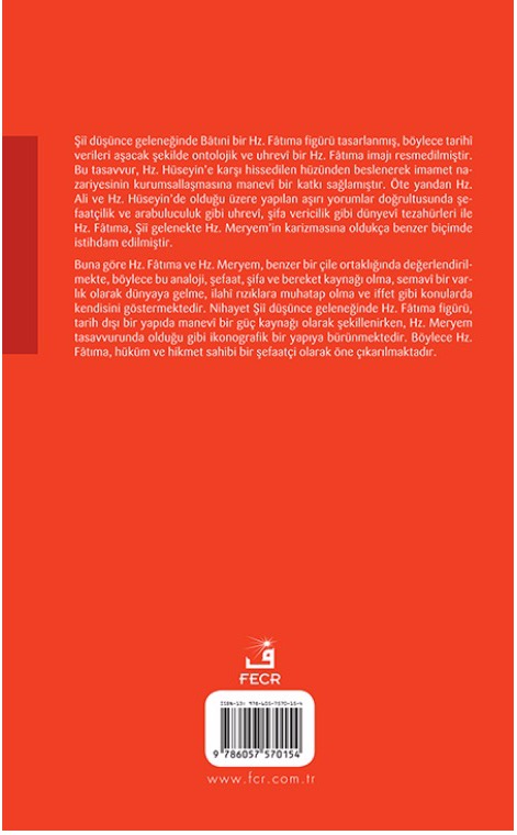 Şiî düşünce geleneğinde Bâtıni bir Hz. Fâtıma figürü tasarlanmış, böylece tarihî verileri aşacak şekilde ontolojik ve uhrevî bir Hz. Fâtıma imajı resmedilmiştir. Bu tasavvur, Hz. Hüseyin’e karşı hissedilen hüzünden beslenerek imamet nazariyesinin kurumsallaşmasına manevî bir katkı sağlamıştır. Öte yandan Hz. Ali ve Hz. Hüseyin’de olduğu üzere yapılan aşırı yorumlar doğrultusunda şefaatçilik ve arabuluculuk gibi uhrevî, flifa vericilik gibi dünyevî tezahürleri ile Hz. Fâtıma, fiiî gelenekte Hz. Meryem’in karizmas›na oldukça benzer biçimde istihdam edilmiştir.